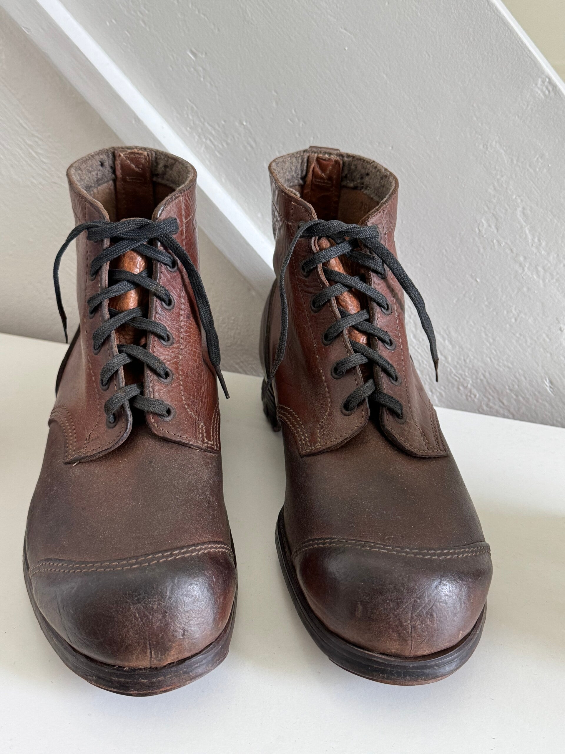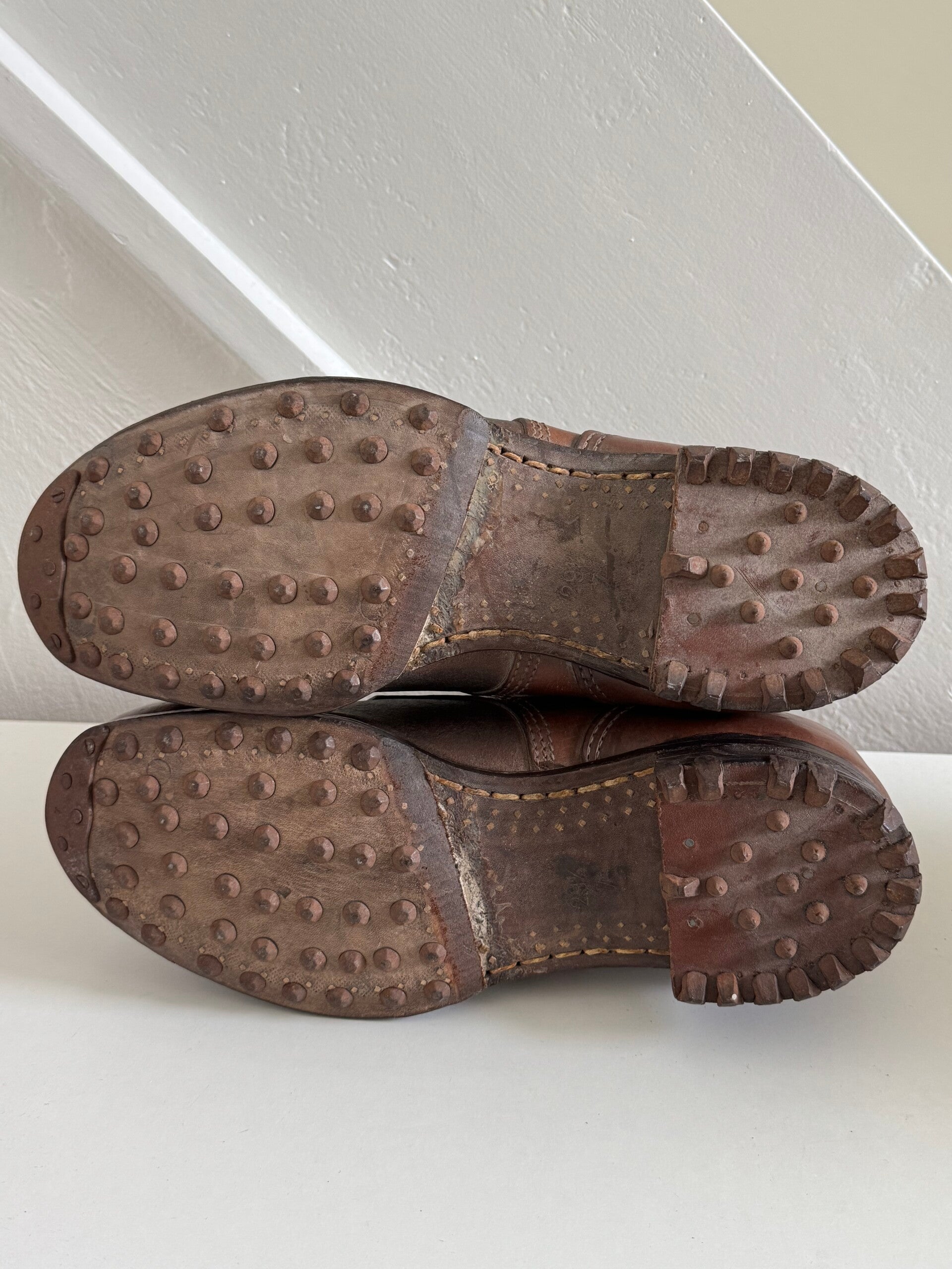 Uiterst zeldzame EM/NCO M44 ENKELLAARS uit de Tweede Wereldoorlog. Deze schoenen zijn in uitstekende, ongedragen staat en zijn een textbook paar met hun originele veters. De schoenen hebben stalen hobnails Maat 29.5, wat overeenkomt met maat 46.